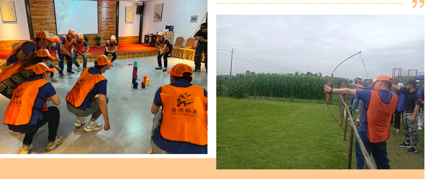 下午迎来了此次团建的第二项活动:俄罗斯方块塔,各团队成员紧密配合,齐心协力;射箭活动,大家相互交流、探讨、分享技巧和感受;高山流水活动,大家并肩作战,你追我赶;急速六十秒,大家集思广益,总结经验教训,一次次突破自我,创造新的纪录。这些活动增强了员工的定力、意志力,加强了员工树立积极沟通、相互信任、团结协作意识。